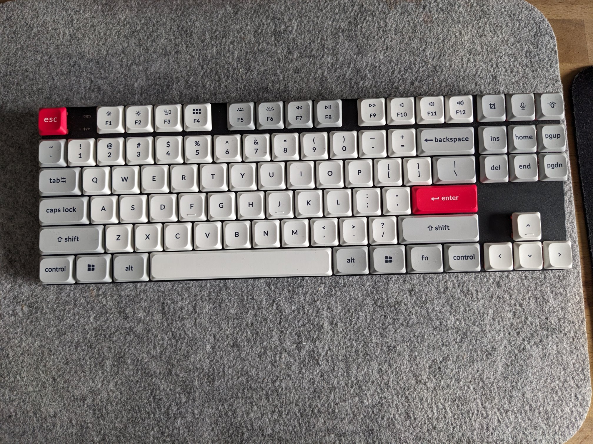 For too long, I put off trying to tackle the problem on the hardware side. Call me stupid, but I had a decent keyboard – a mechanical gaming keyboard with the very popular Cherry MX Brown switches – so I didn’t really think it was at fault. But there came a point when I started thinking: what if I replaced it with something that required a lighter touch, more like a laptop keyboard? So I picked a keyboard which had very short “key travel” (how far the keys move) and very little actuation force – the Keychron K1 Max with red low-profile switches.